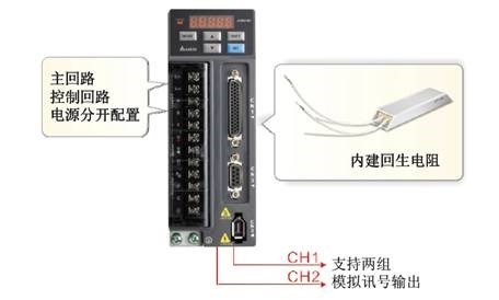 - 動力線和編碼器接線與ASDA-B系列共用,并搭配相同尺寸的ECMA系列電機,方便原有客戶直接升級為ASDA-B2系列。